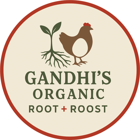 Gandhi’s Organic Root + Roost is our little family farm, born from a shared dream of living thoughtfully on the land. After moving our family to Hereford, AZ, we blend research-backed agricultural knowledge and innovation to create homestead solutions that make starting and growing a backyard farm simple and accessible.